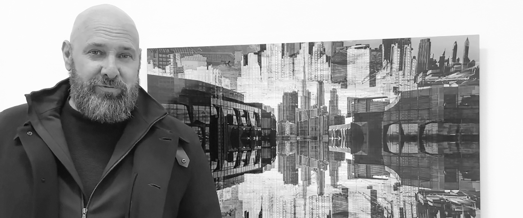 Jonathan Gainer’s series AEROGLYPHS presents a suite of large-format wall works that approach the city as a writing _system. Each picture originates as real, drone-sourced photography gathered through rigorous aviation protocols. From this material, Jonathan Gainer composes masked and blended photography constructions that stage the built environment as a set of ‘cityglyphs’ - signs through which architecture signals emotion while encoding movement, ambiance, and belief. The chain of production remains strictly photographic; no AI or CGI is used.