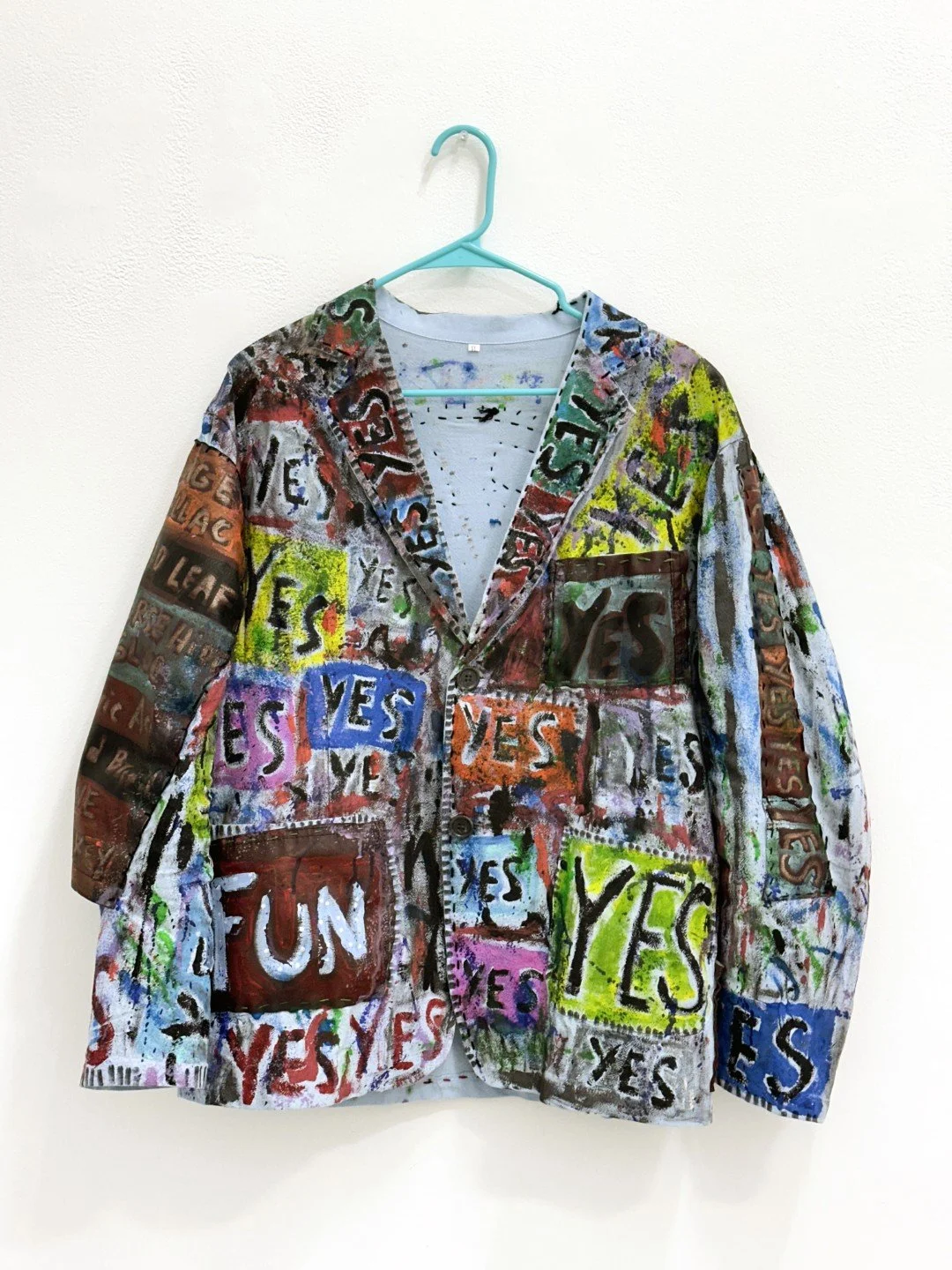Y E S (jacket) 2025 Hand-painted on fabric 30 x 28 x 3 inches Unique