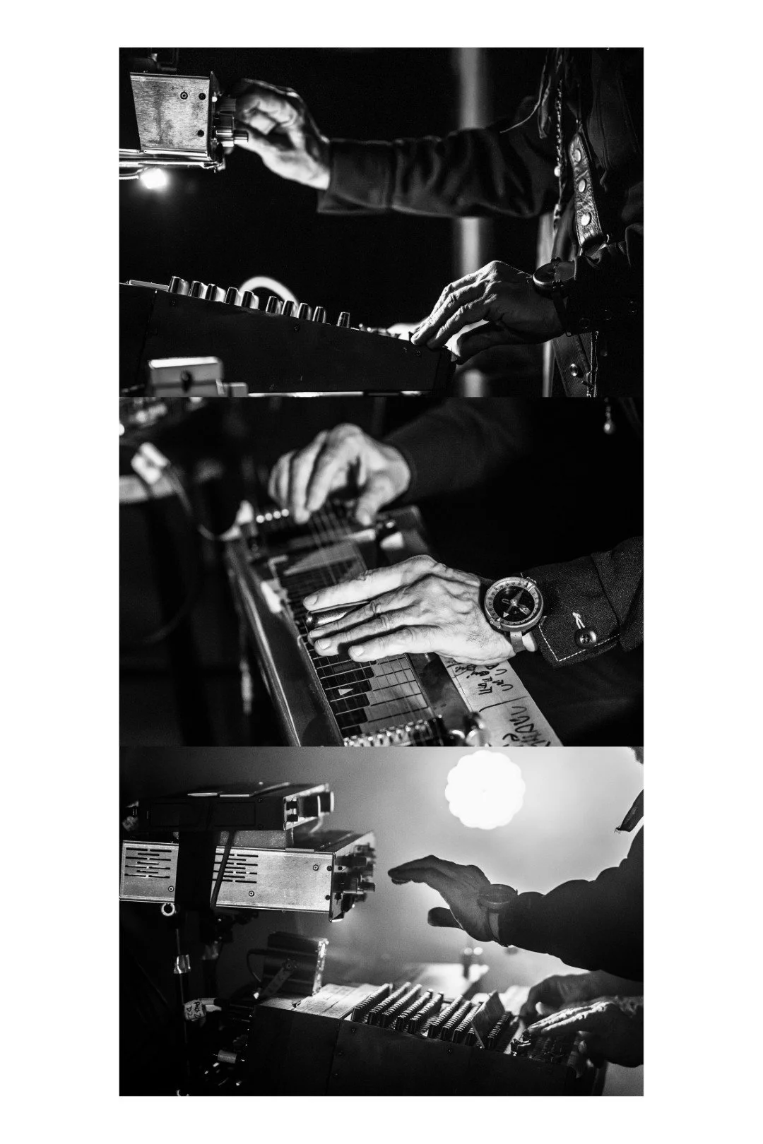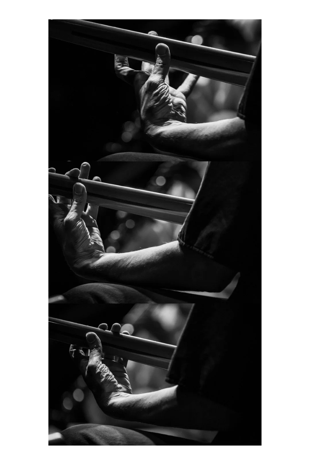 “Show of Hands offers a new perspective on the emotional, spiritual and physiological transmission of music through the hands of remarkable musicians. The emphasis in most contemporary music photography is often on full-body, “peak moment” gestures and the effortful contortions that speak more to fandom than understanding of the music. But on closer inspection, hands are just as active, if not more-so, in the transmission of music from the creative inner-soul into the instrument and through to the listener. The miraculous dexterity and fine-tuned athleticism involved with playing a guitar, bass, piano—or even a vocalist using their hands to make subtle changes in the position of a microphone or to gesture to the audience—shape our connection to the artist and their music. Hands can also express compassion, excitement, and an effort of an artist to give themselves to the audience. By focusing on the hands, I’ve discovered that every artist has unique gestures and mannerisms that provide subtle clues to their inner-identity. With Show of Hands, I hope to reorient our connection to music and to the artist. The hands that appear in this show are all connected to gifted and influential musicians including Joan Baez, Linda Ronstadt, Blake Mills, Pino Palladino and Daniel Lanois among others.”