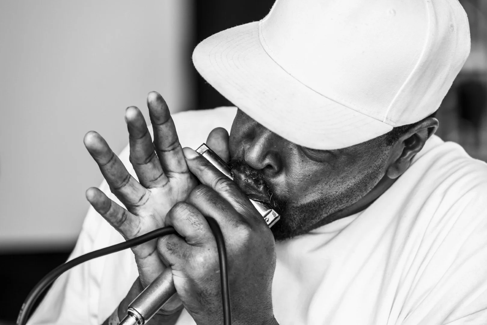 “Show of Hands offers a new perspective on the emotional, spiritual and physiological transmission of music through the hands of remarkable musicians. The emphasis in most contemporary music photography is often on full-body, “peak moment” gestures and the effortful contortions that speak more to fandom than understanding of the music.Buton closer inspection, hands are just as active, if not more-so, in the transmission of music from the creative inner-soul into the instrument and through to the listener. The miraculous dexterity and fine-tuned athleticism involved with playing a guitar, bass, piano—or even a vocalist using their hands to make subtle changes in the position of a microphone or to gesture to the audience—shape our connection to the artist and their music. Hands can also express compassion, excitement, and an effort of an artist to give themselves to the audience. By focusing on the hands, I’ve discovered that every artist has unique gestures and mannerisms that provide subtle clues to their inner-identity. With Show of Hands, I hope to reorient our connection to music and to the artist. The hands that appear in this show are all connected to gifted and influential musicians including Joan Baez, Linda Ronstadt, Blake Mills, Pino Palladino and Daniel Lanois among others.”