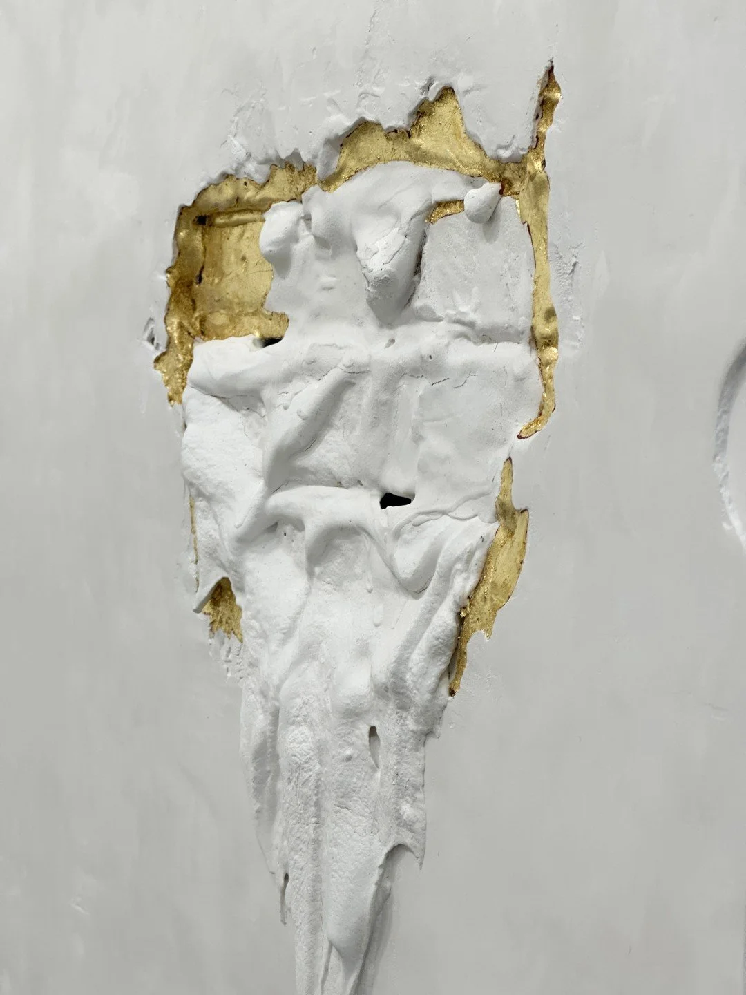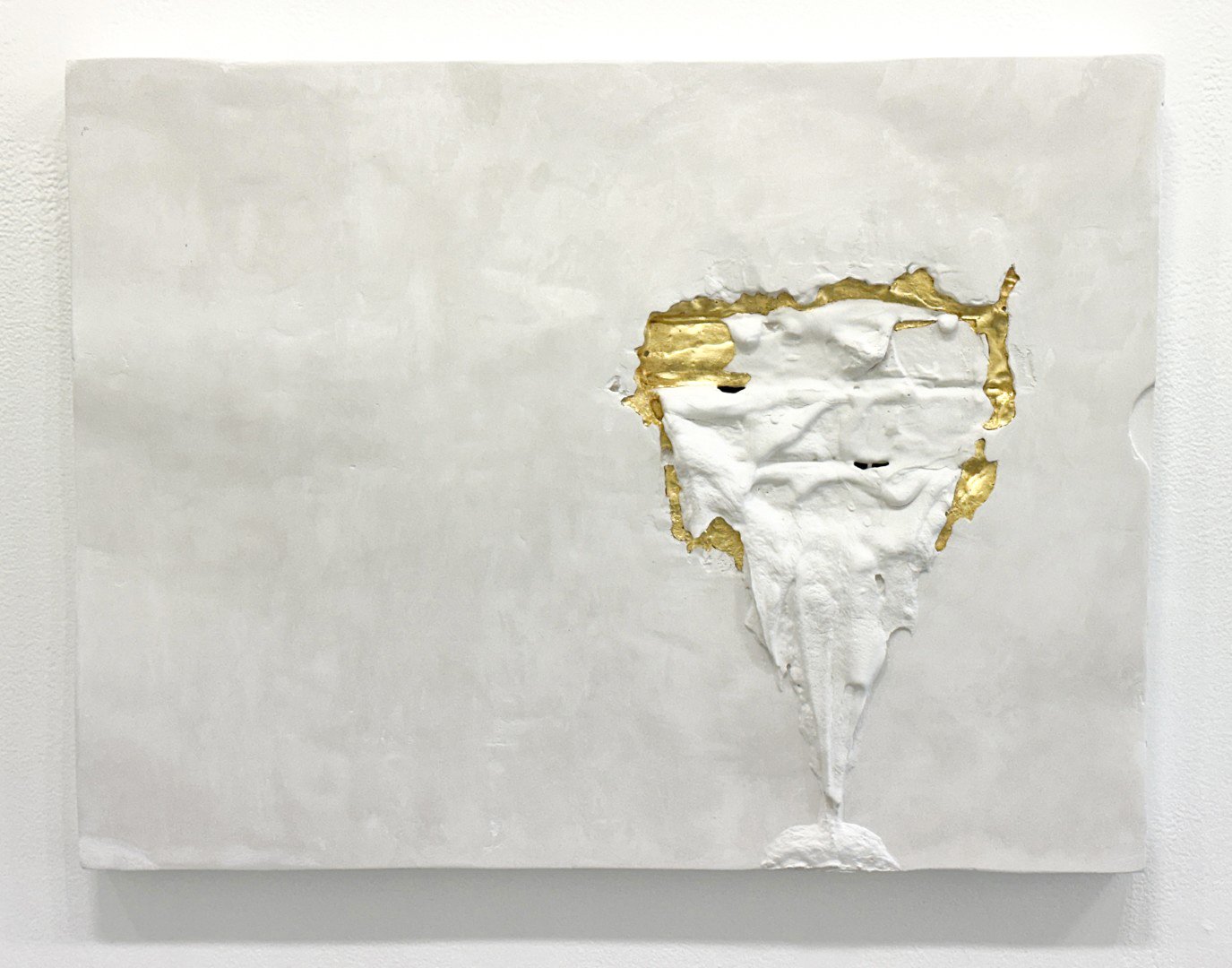 Birthmark II 2026 Plaster, gold leaf on lath 18 × 24 × 2.5 inches (45.72 × 61 × 6.35 cm)