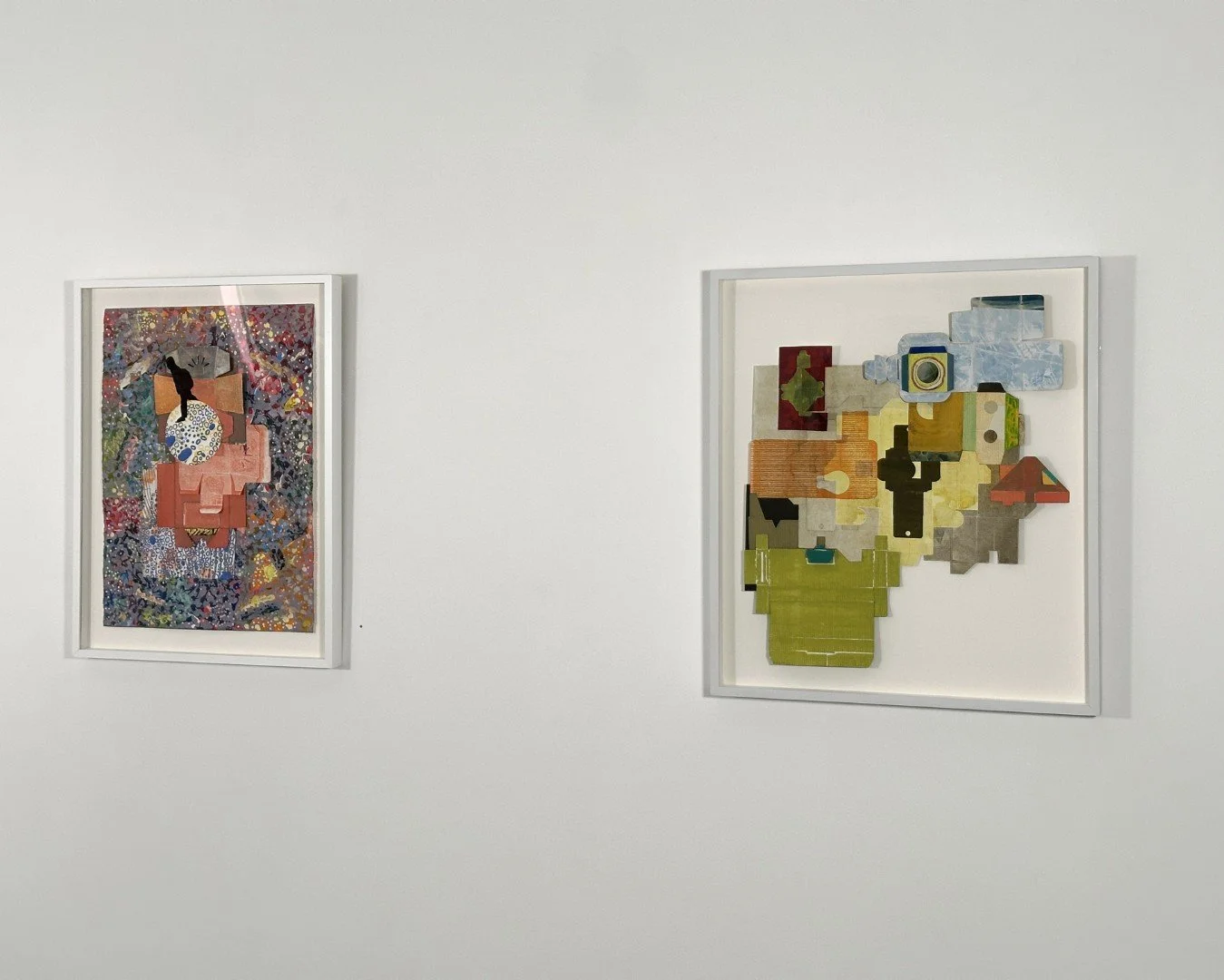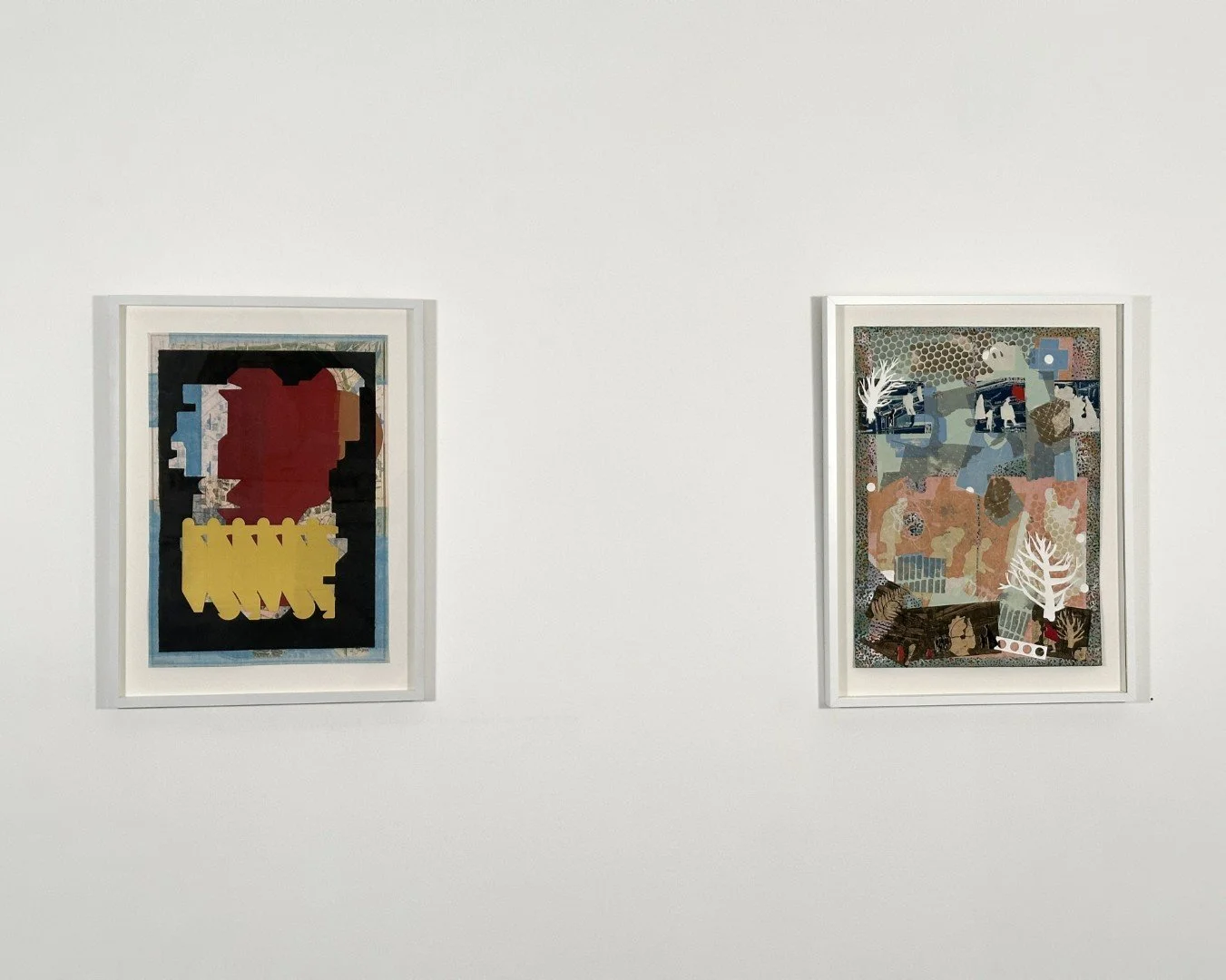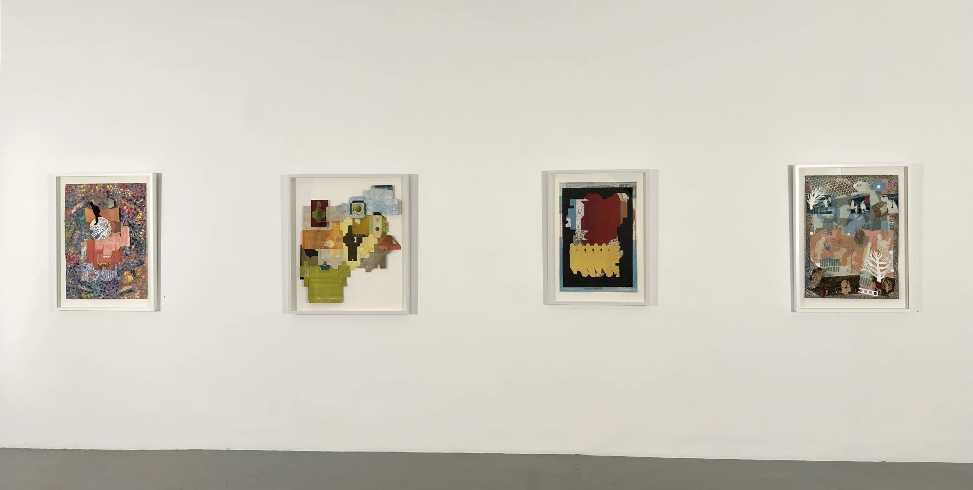 Born of the interplay between solitary work in her studio, the push-pull of her personal life, and the ongoing turmoil of the outside world, Dubinsky’s new work builds on her earlier work and combines maps and silhouetted figures with abstract shapes created by flattened and printed boxes. Using painting, printmaking, alternative photography, and collage she incorporates earlier, never shown or salvaged work and frames.